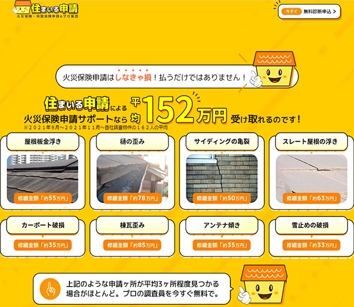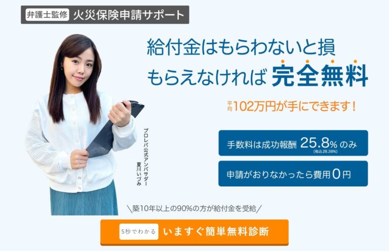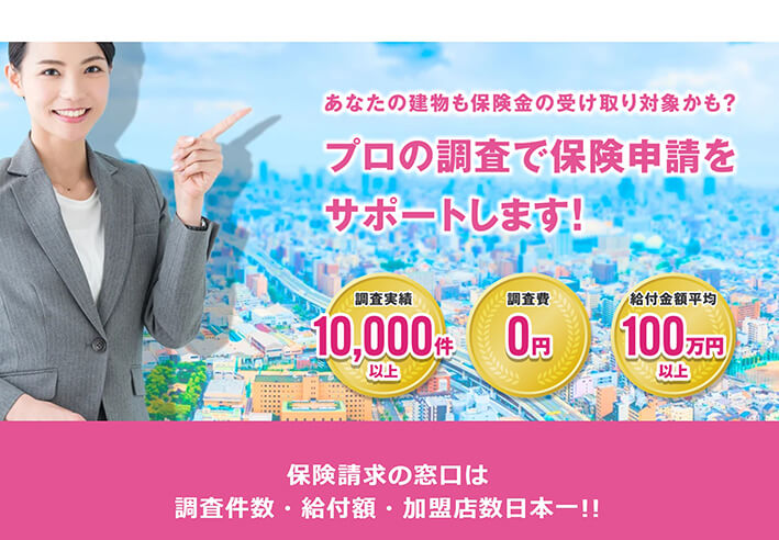 今回ご紹介した火災保険申請サポートのなかで、実際に受け取れる金額がもっとも高い。