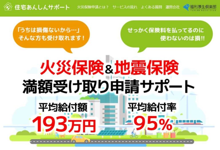 当サイトがオススメする「最も優良な」火災保険申請サポートは住宅あんしんサポート!